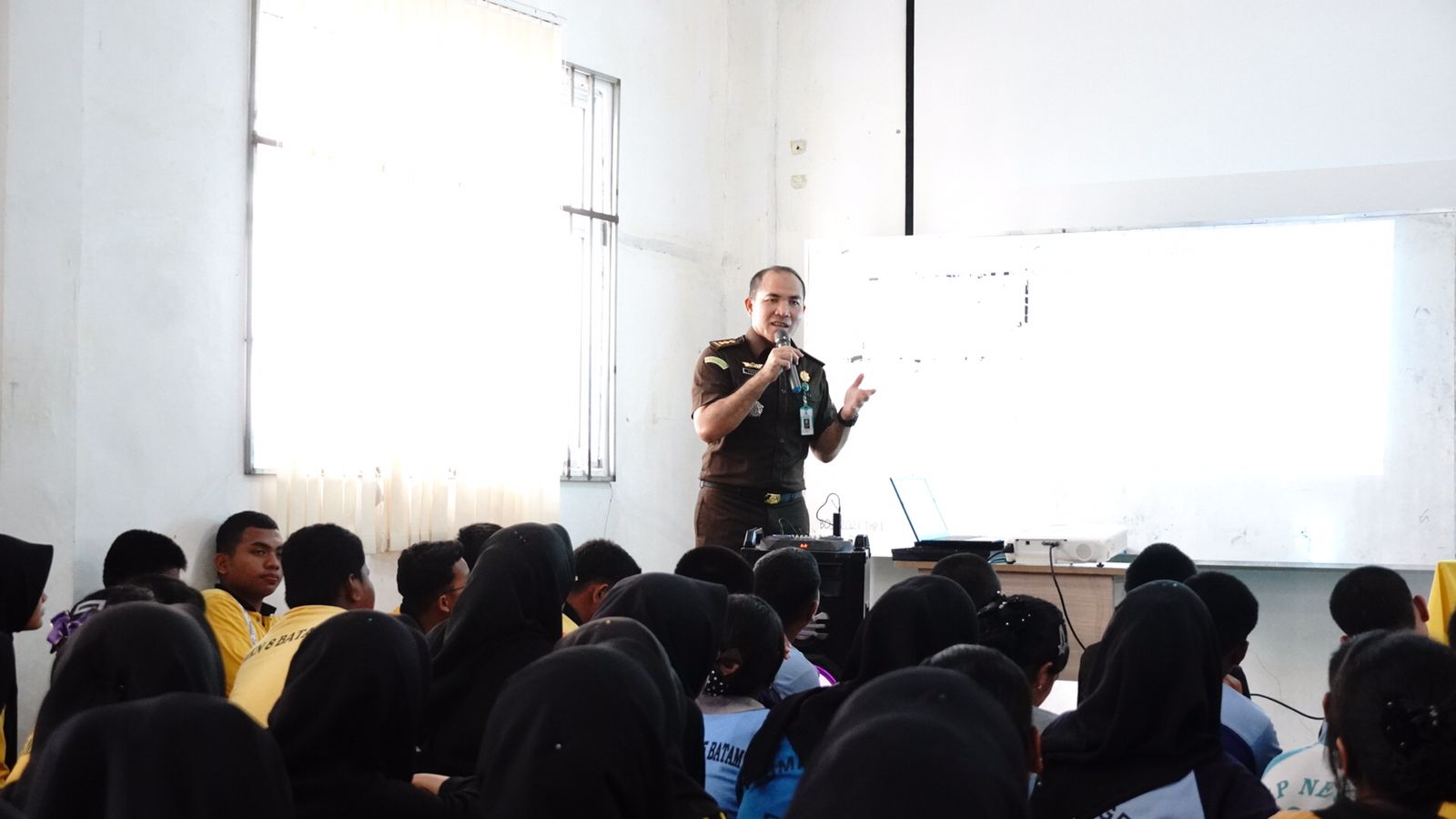Kegiatan JMS (JMS) ini bertujuan memberikan pengenalan dan pemahaman mengenai pengetahuan hukum sejak dini kepada para siswa/peserta didik tingkat sekolah menengah, yang merupakan generasi emas penerus bangsa. Adapun yang bertindak sebagai narasumber adalah Kasi Penkum Kejati Kepri Yusnar Yusuf, S.H. M.H.