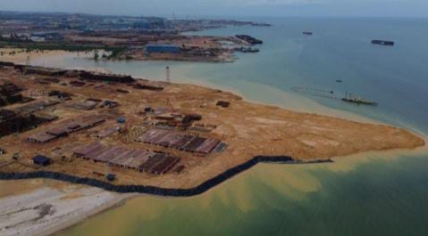 Tanjung Sauh yang juga sedang dilakukan penimbunan besar-besaran, yang
