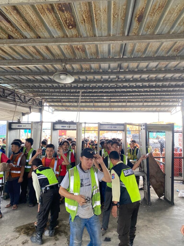 Petugas Keamanan melakukan pemeriksaan terhadap karyawan PT Esun. F. Istimewa