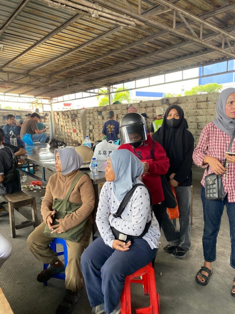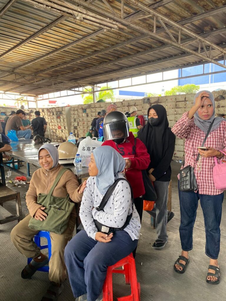 Karyawan PT Esun saat jam istirahat. F. Istimewa